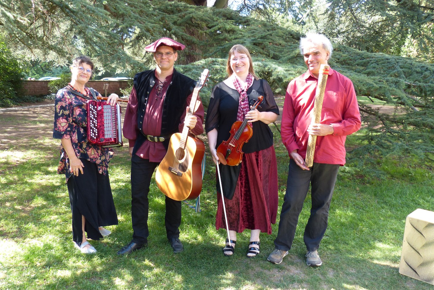 Die Musiknarren musizieren seit ca. 15 Jahren zusammen, vor 10 Jahren kam Gudrun Nagel in unsere Band mit ihrem wunderbar vielfältigem Knopfakkordeon und seit Sommer 2025 bereichert Wolfang Kempe unseren Klang durch groovig flotte oder sanfte Percussion.